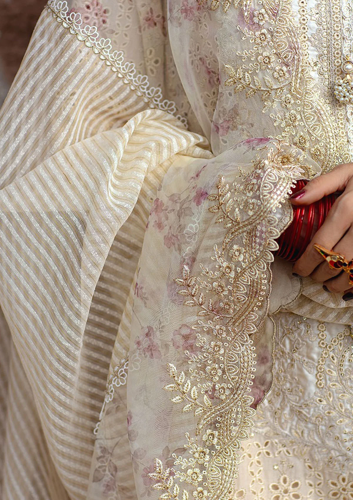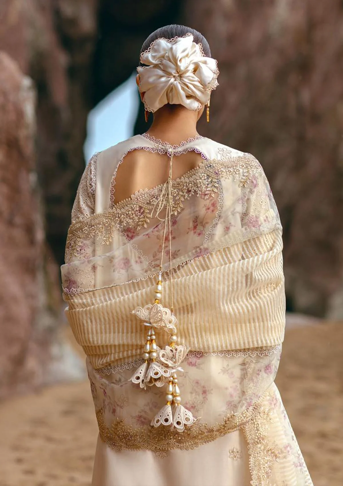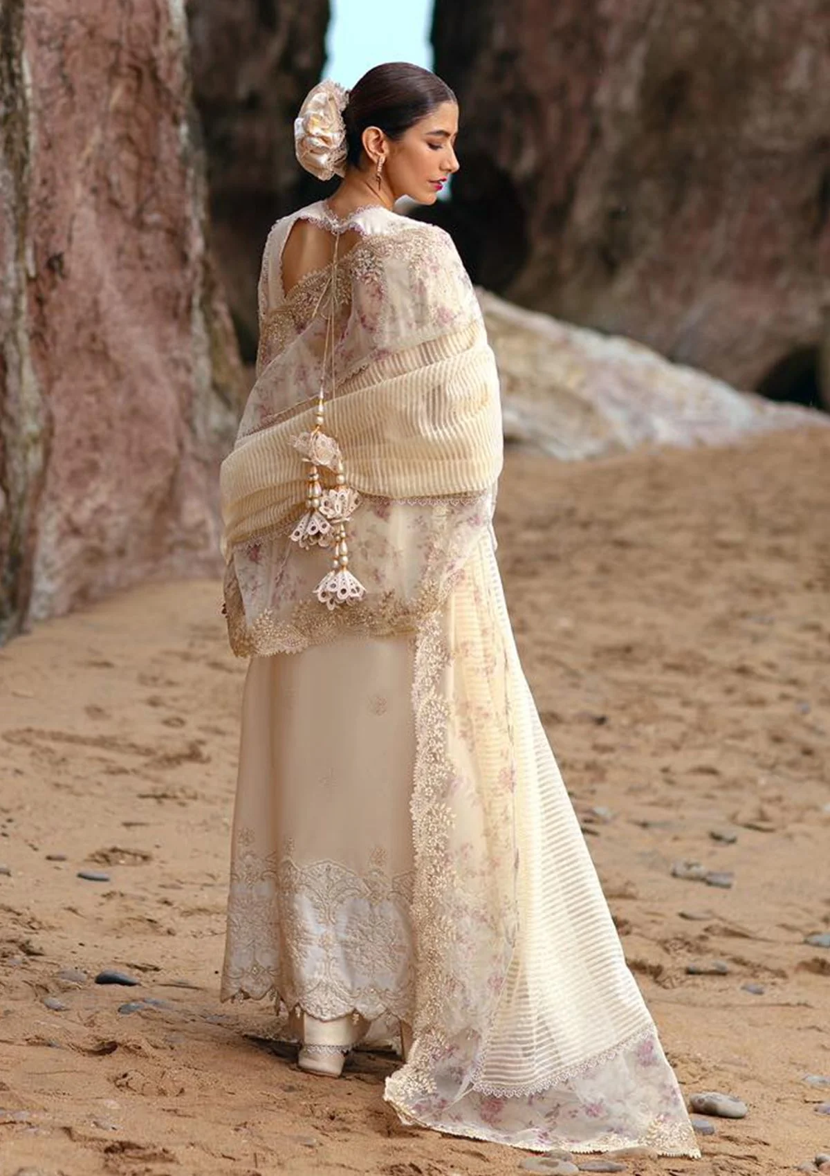 Embroidered Front (Lawn) (1 Yard) Embroidered Back (Lawn) (1 Yard) Embroidered Sleeves (Lawn) (1.2 Yards) Embroidered Neck Patch (Satin) (1 Piece) Embroidered Hem, Sleeves Border (Satin) (2 Yards) Embroidered Back Border (Satin) (1 Yard) Embroidered Border Dupatta (Printed Organza) (8 Meters) Dyed Dupatta (Tilla Karandi) (2.5 Meters) Dyed Trouser (Cotton) (3 Meters)