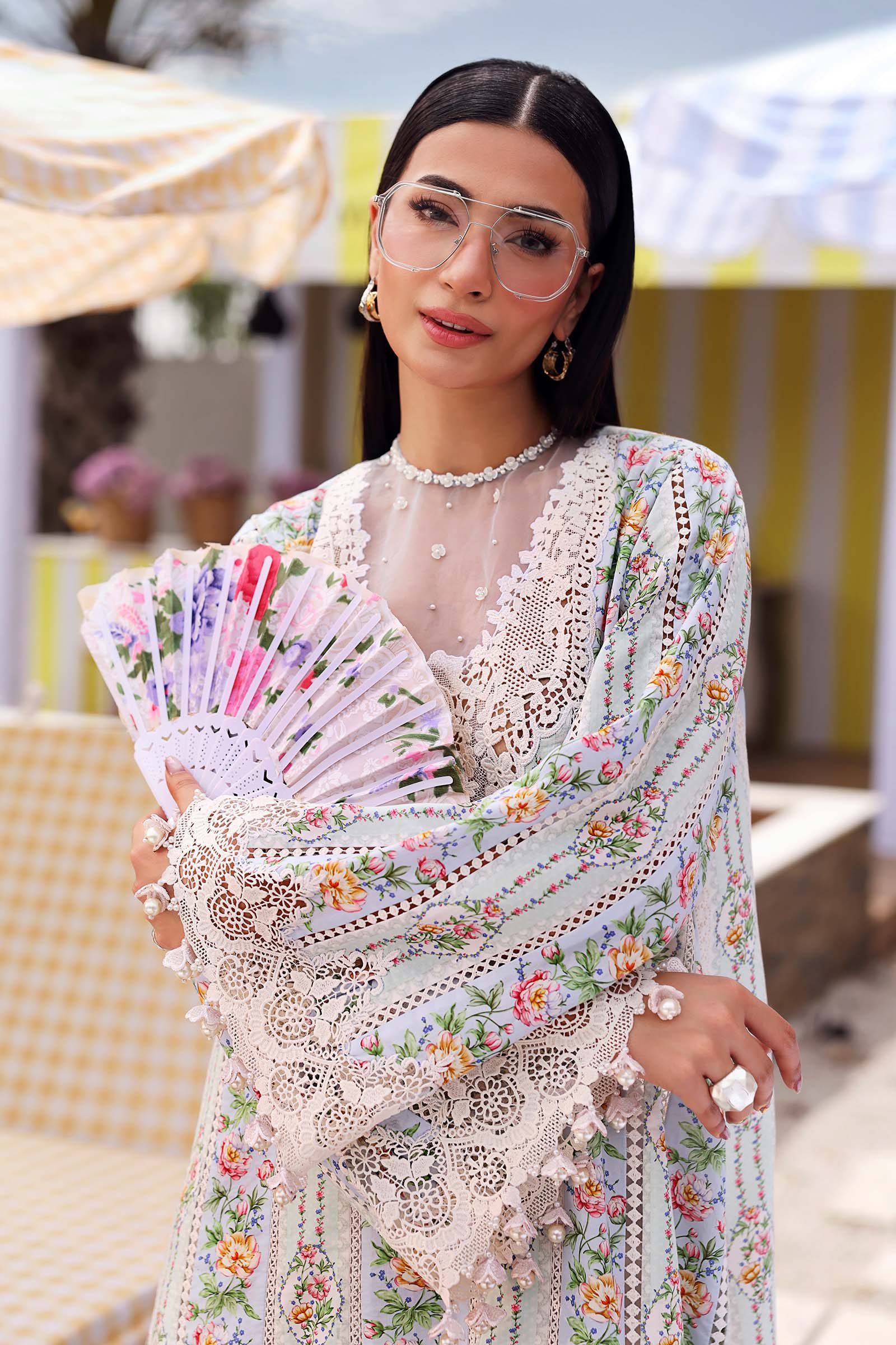 Shirt Printed Lawn Shirt Embroidered Neckline Embroidered Patches Trouser Dyed Cambric Trouser Dupatta Printed Chiffon Dupatta
