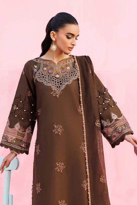 SHIRT EMB FRONT LAWN 01 PCS DYED BACK LAWN 0.84 MTR EMB SLEEVE LAWN 0.55 MTR EMB FRONT DAMAN 01 SET EMD SLEEVE LACE 0.90 MTR DUPATTA EMB VOIL DUPATTA 2.50 MTR TROUSER DYED CAMBRIC TROUSER 2.50 MTR