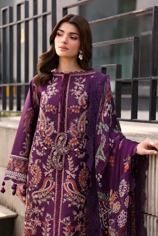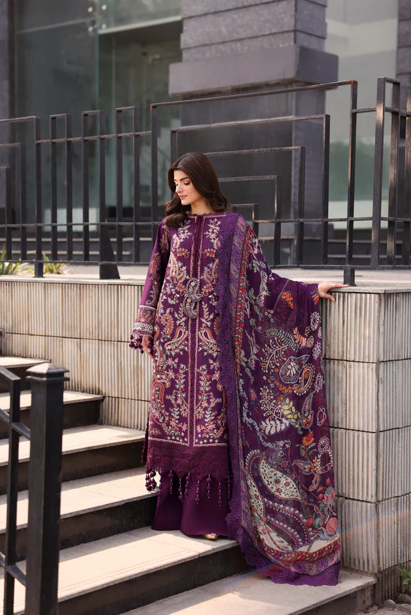 Shirt Dyed Embroidered Front(Left & Right) Dyed Embroidered Sleeves Dyed Plain Back Add On Embroidered Hem Border For Front Embroidered Sleeves Lace Dupatta Digital Printed Pure Chiffon Trouser Dyed Plain Cotton Trouser