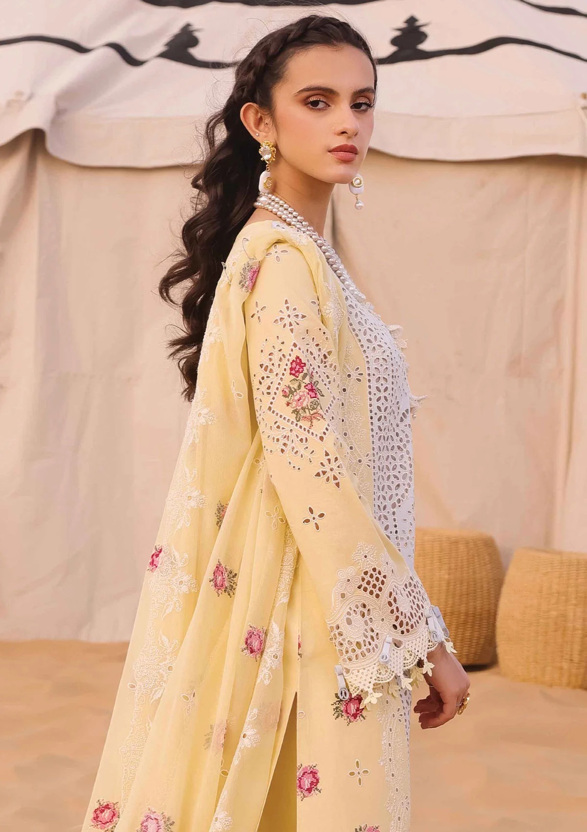 Chikan kari Embroidered Dupatta Pallu