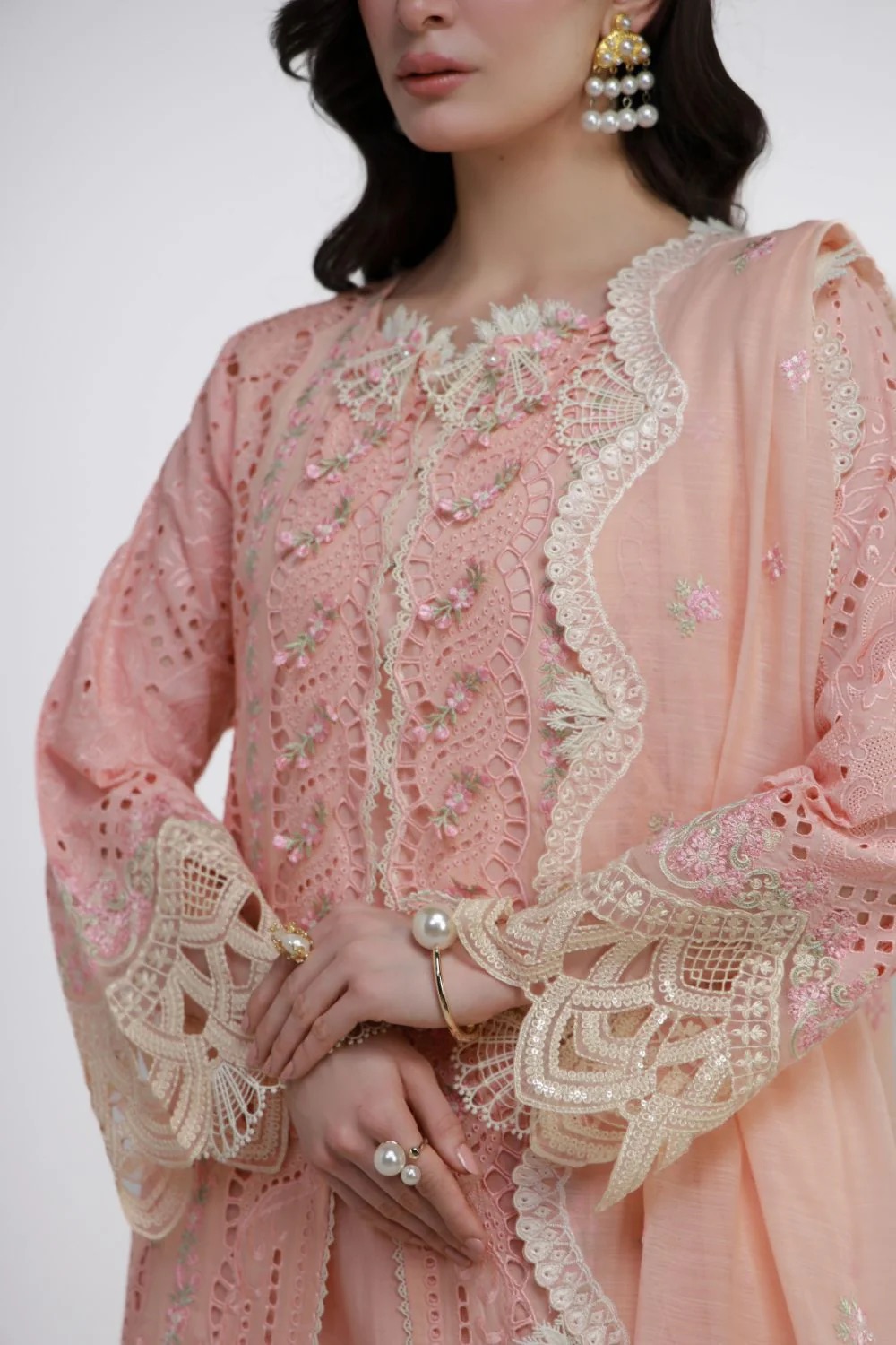 Schiffli Embroidered Front (L+R) Panels on Lawn