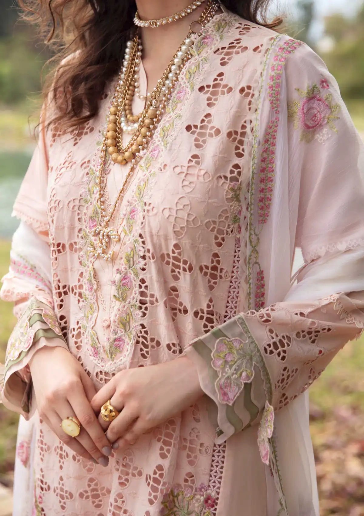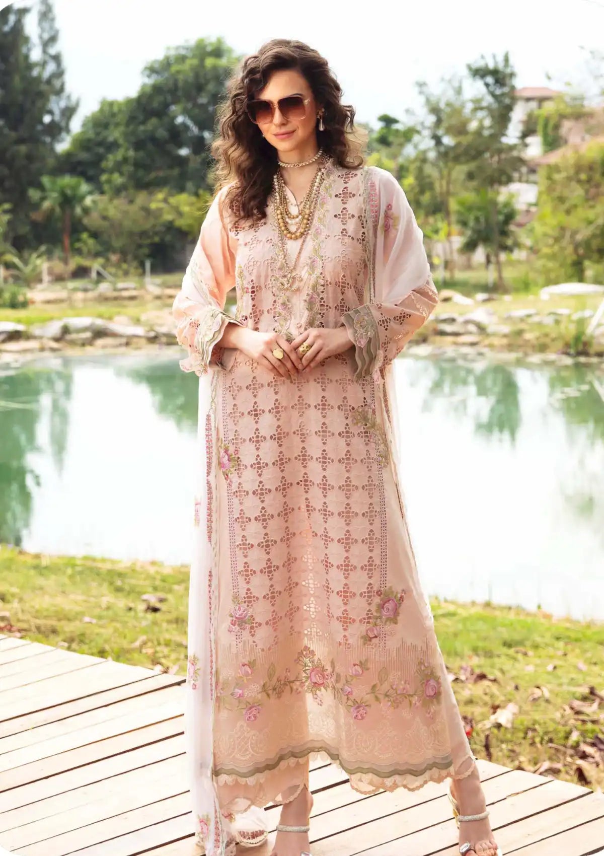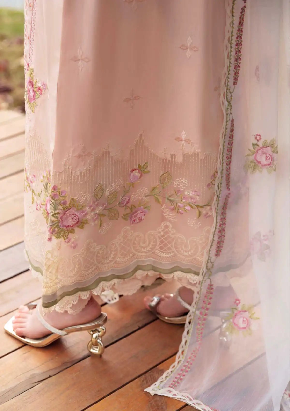 Embroidered Front Hem Border On Pink Organza 40″ 01