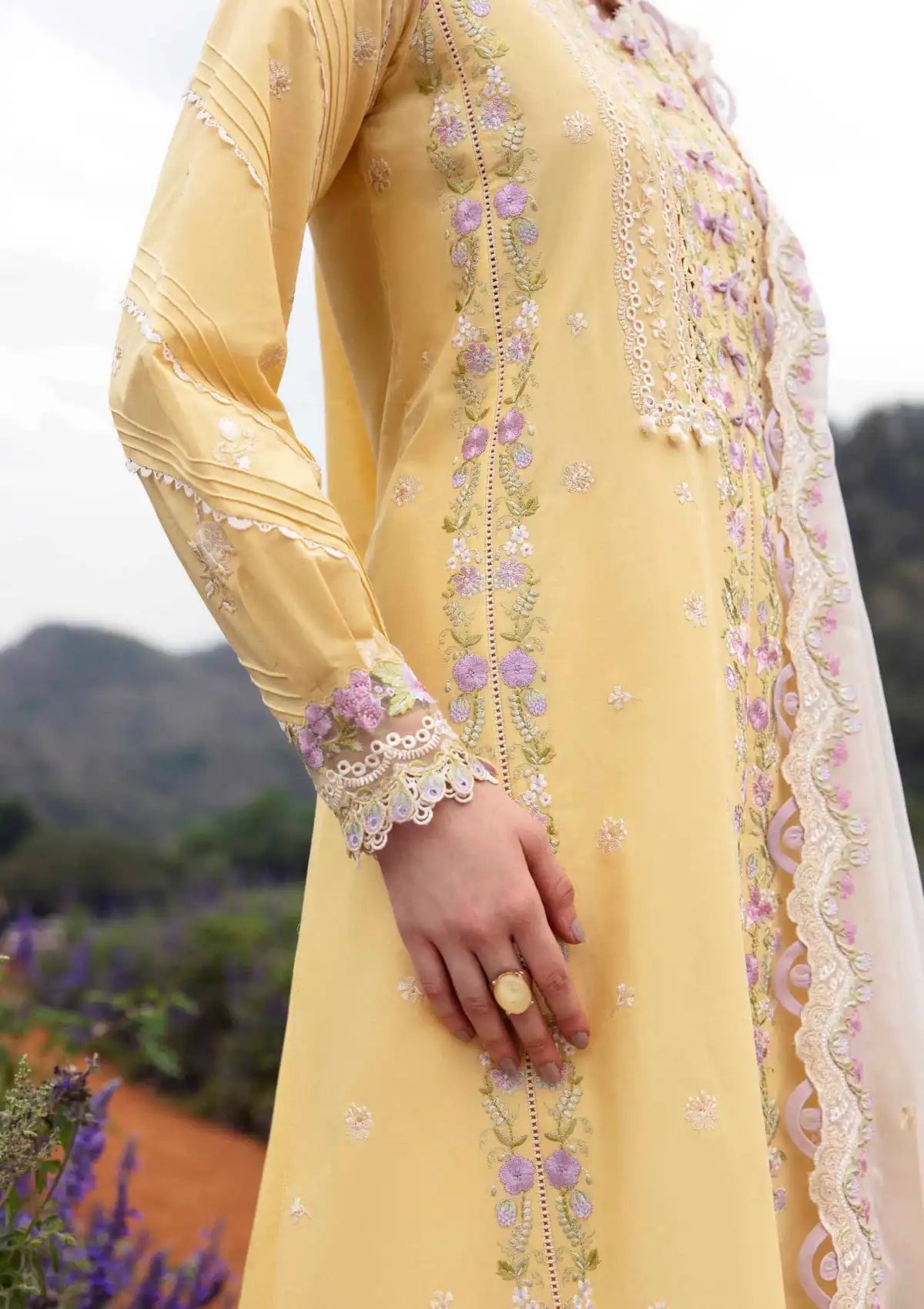 On Yellow Lawn Fabric L-45″ 01