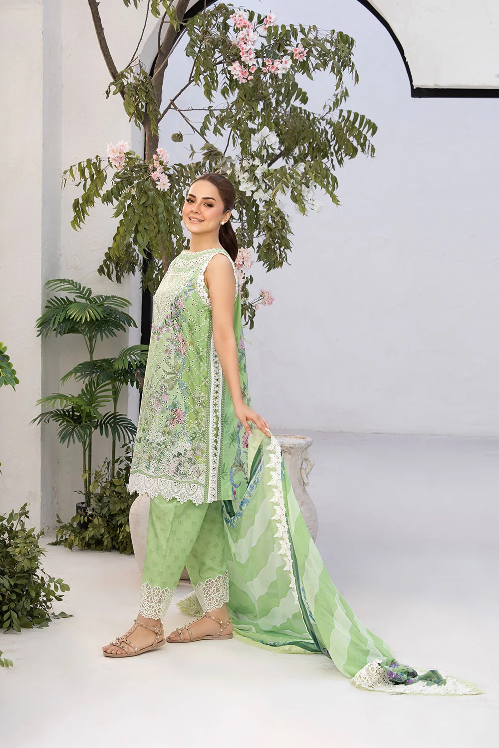 Embroidered Lawn Front Embroidered Neck patch Embroidered Sleeves patch Printed Lawn Back Printed Lawn Sleeves Printed Lawn Trouser Printed Chiffon Dupatta (extra laces, hangings and accessories are not included)